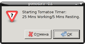 В Gnome2 в настройках клавиатуры есть вкладка "Перерыв в работе", где задается продолжительность работы (30 мин) и продолжительность перерыва (5 мин) и получаем самый простой, штатно установленный вариант pomodoro. Который включается без установки доп. софта за 7 кликов :)